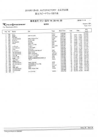 2020年2月24日(月) 2016年2月14日AUTOFACTORYFSW丸一日走行会 リザルト |