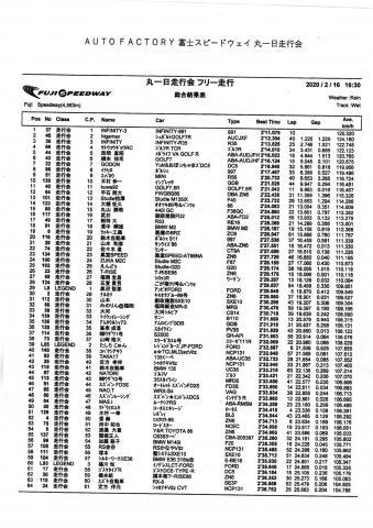 2020年2月24日(月) 2020年2月16日AUTOFACTORYFSW丸一日走行会総合リザルト |