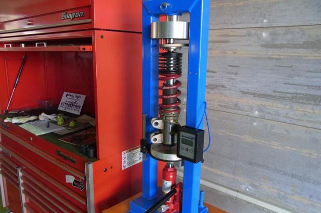 今日は朝から2台のデモカーのセット荷重やらバネ定数やらを測定しています。